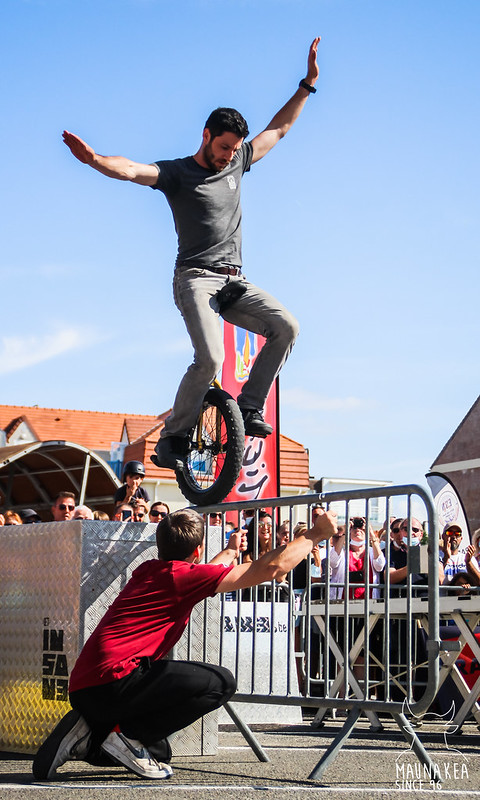 Nos amis belges menés par Iciar nous ont proposé des démonstrations mêlant VTT trial, Monocycle freestyle et Free run.